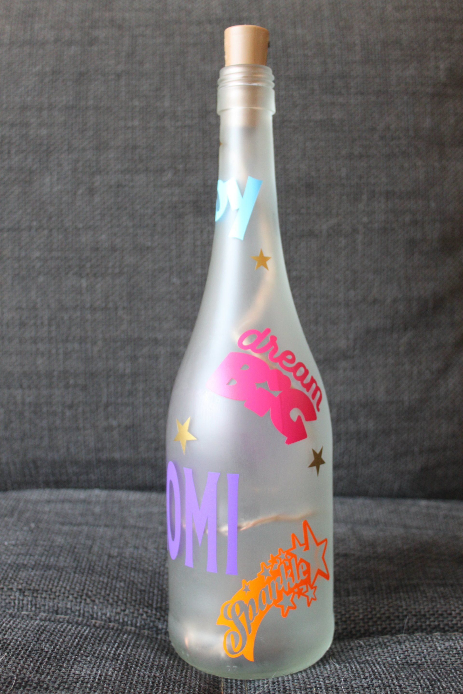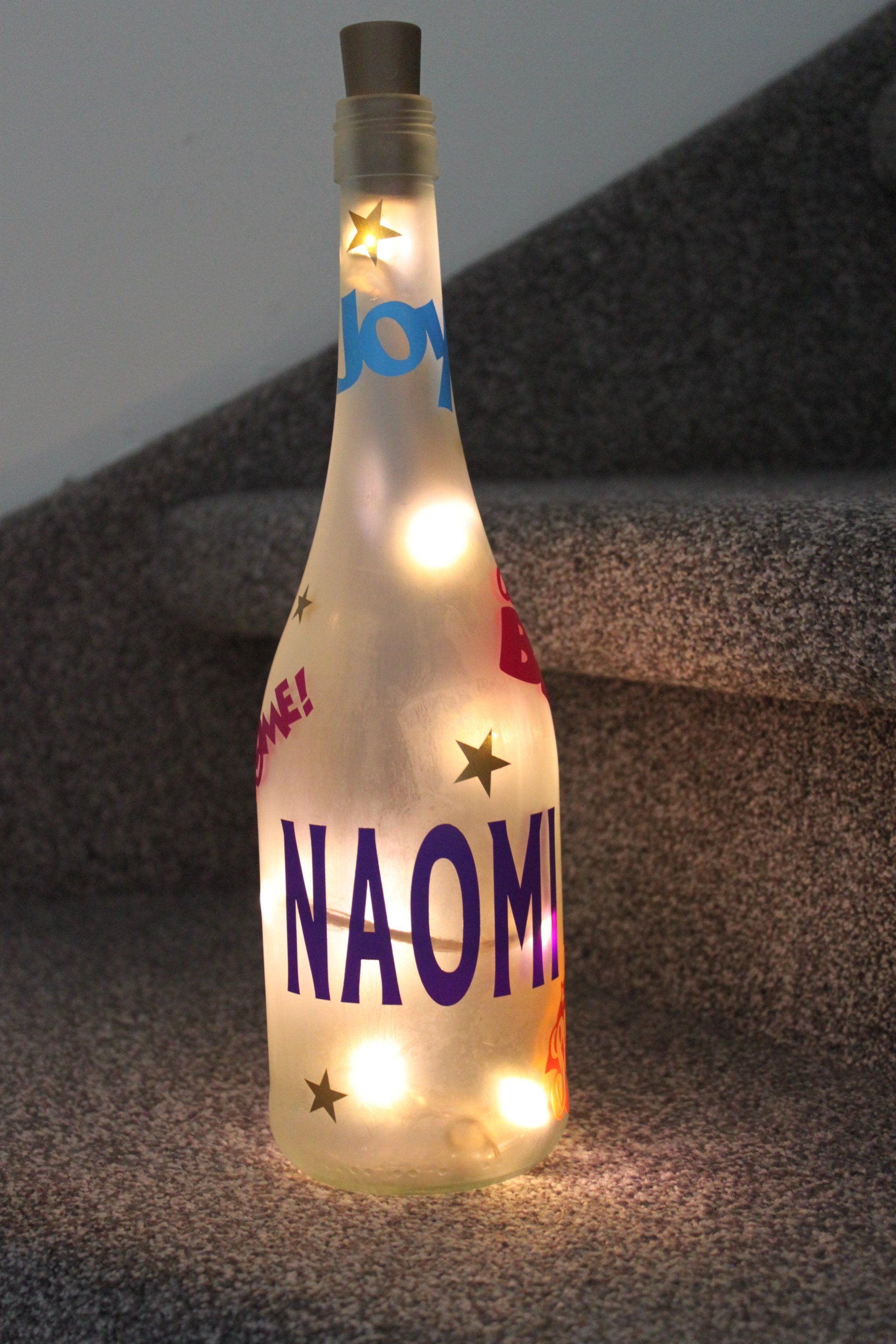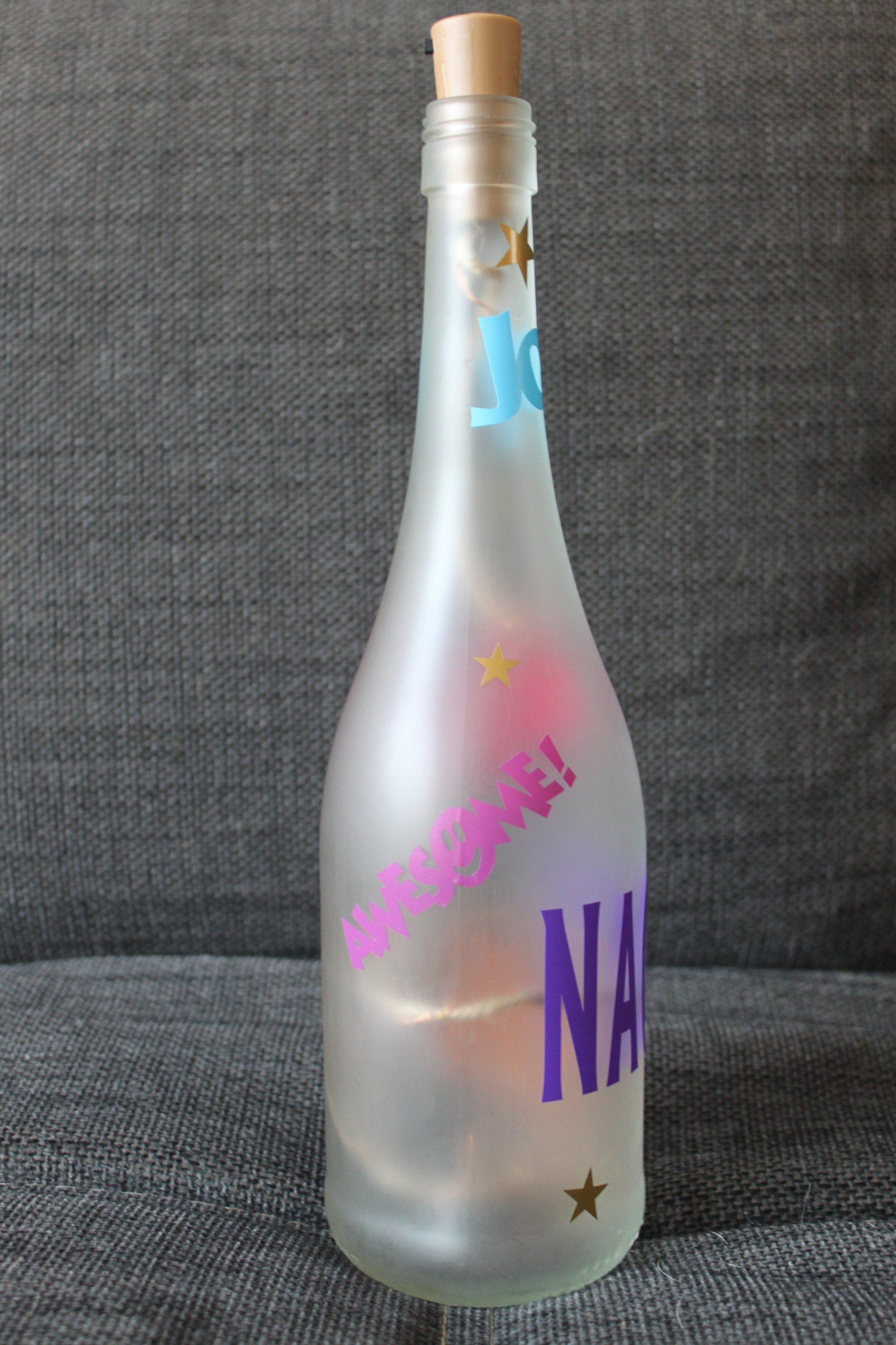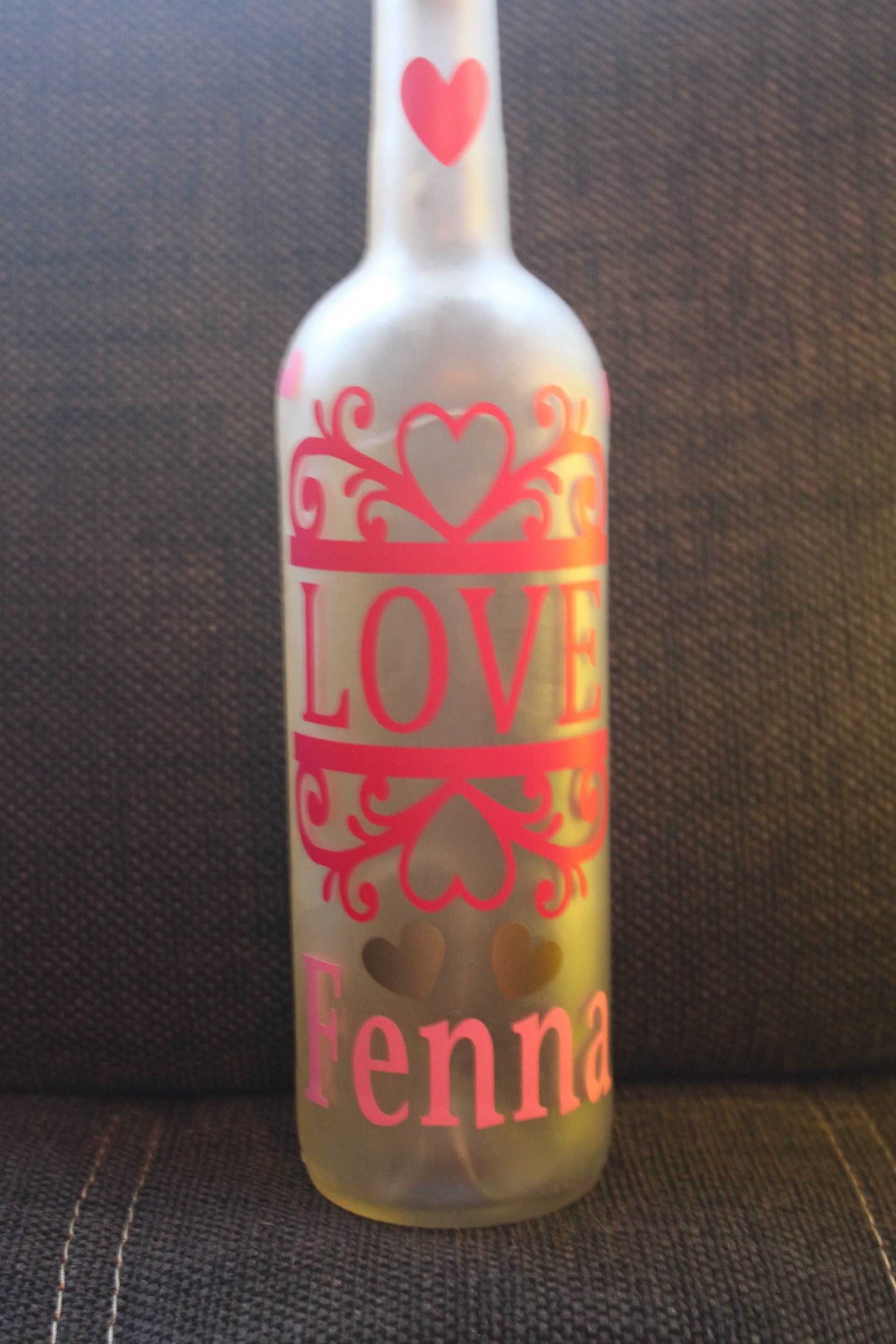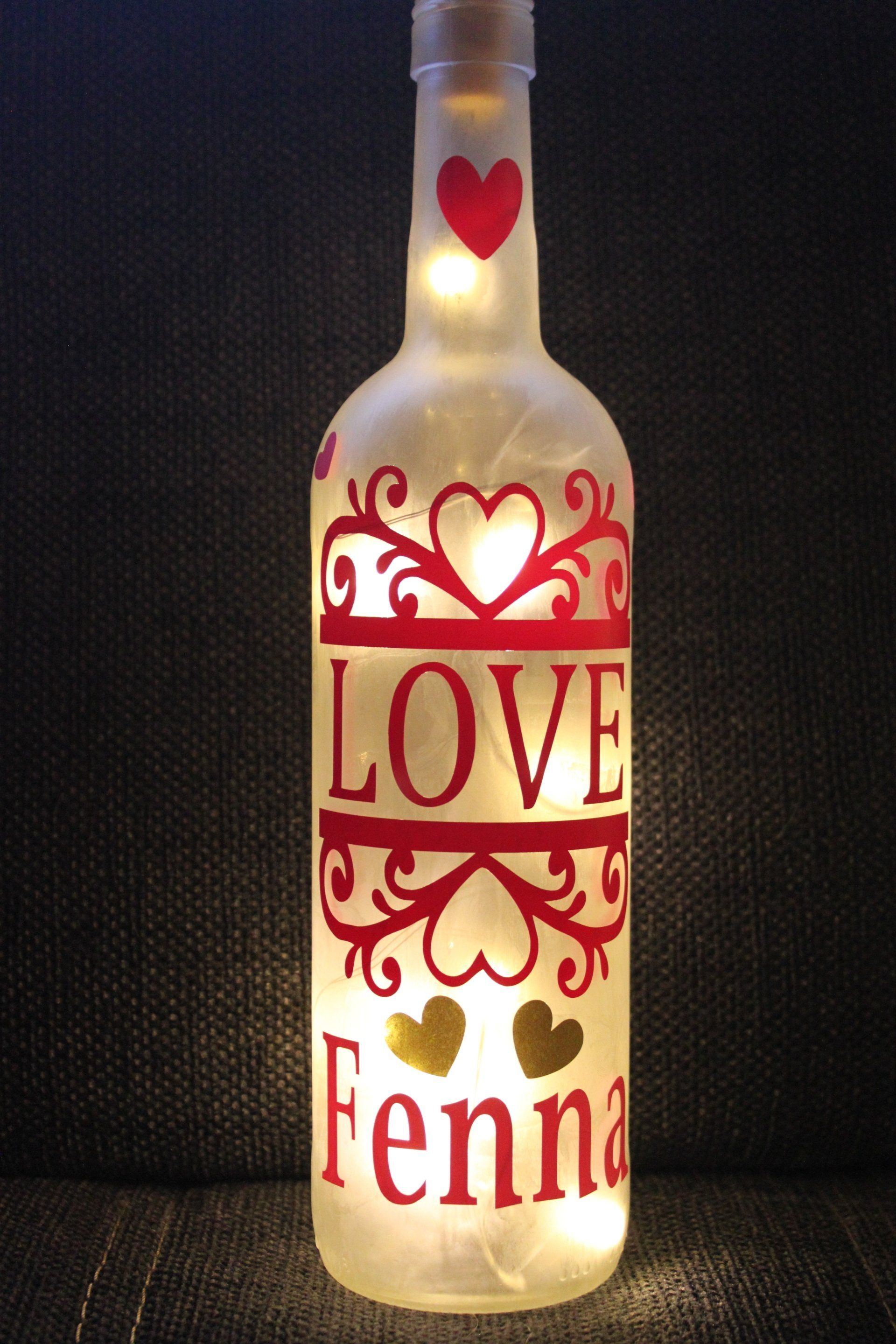 Gezellig een fles met afbeeldingen of lieve teksten voorzien van een ledsnoer.