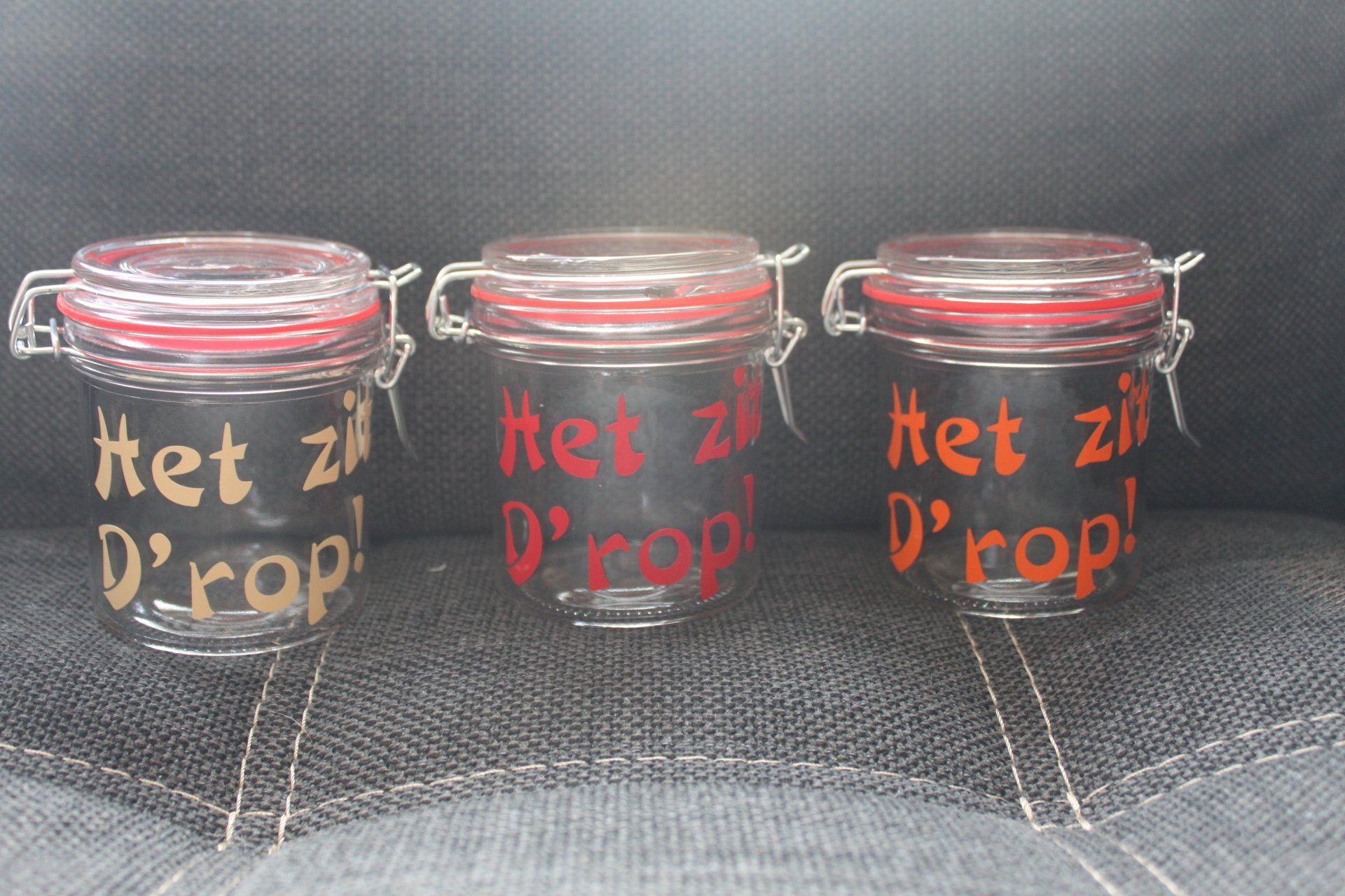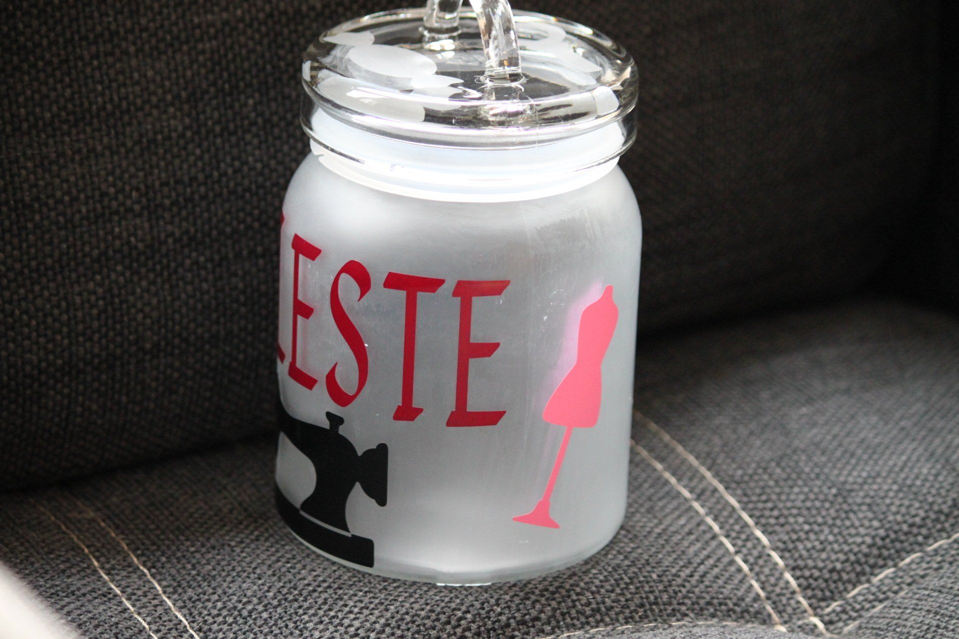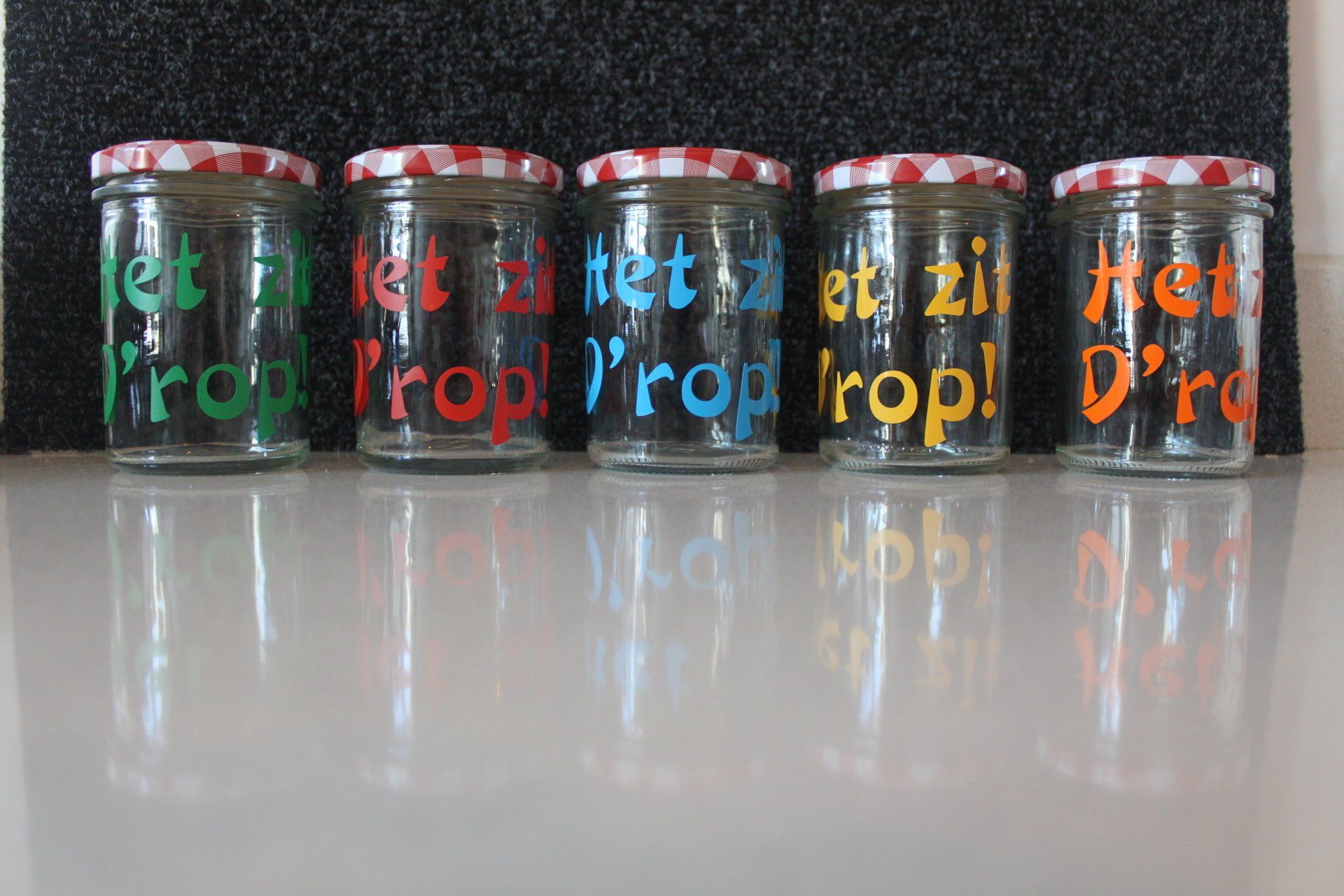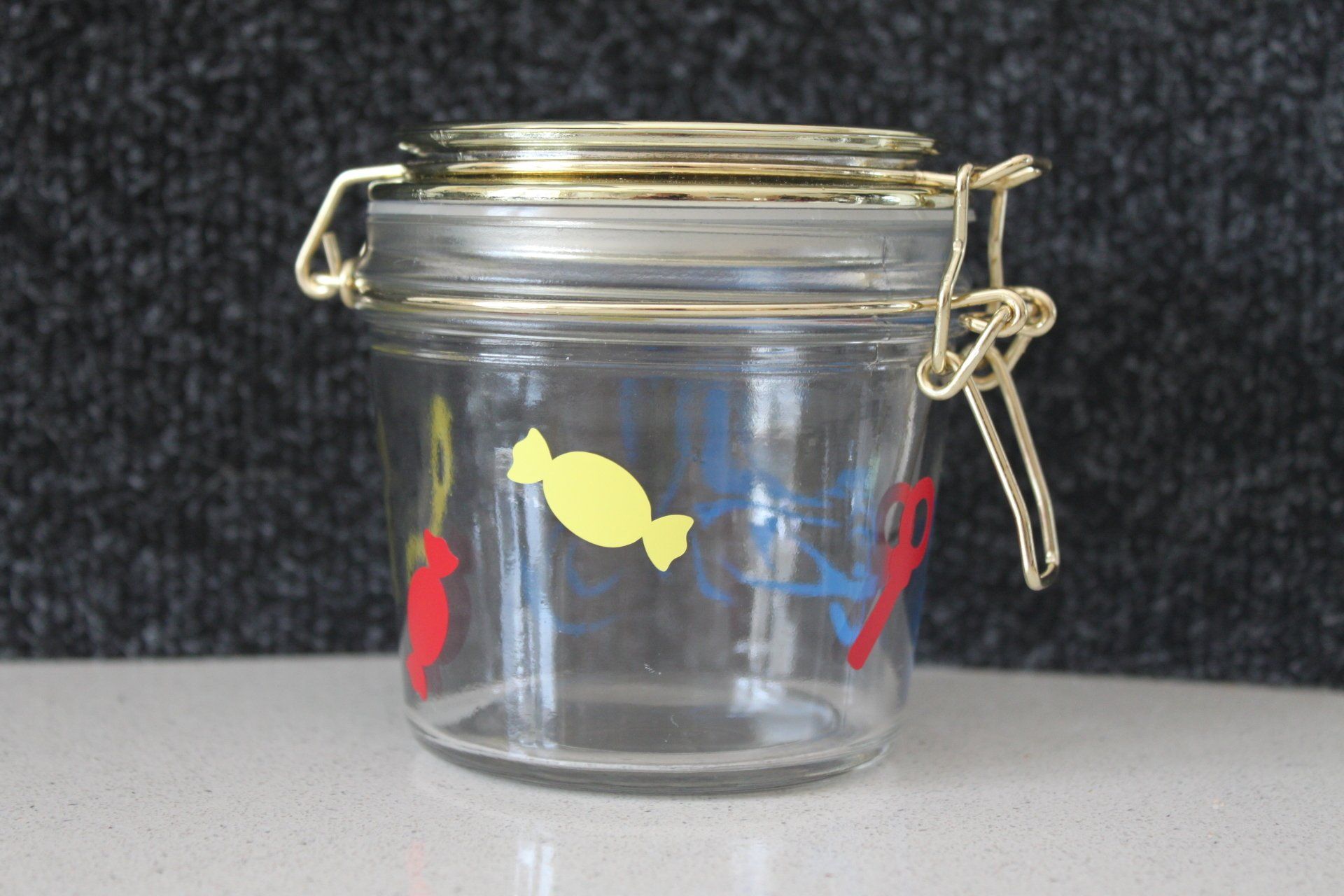 Bestel een snoeppot of wekpot met een leuke decoratie sticker en eventueel met naam of iets dergelijks erop.