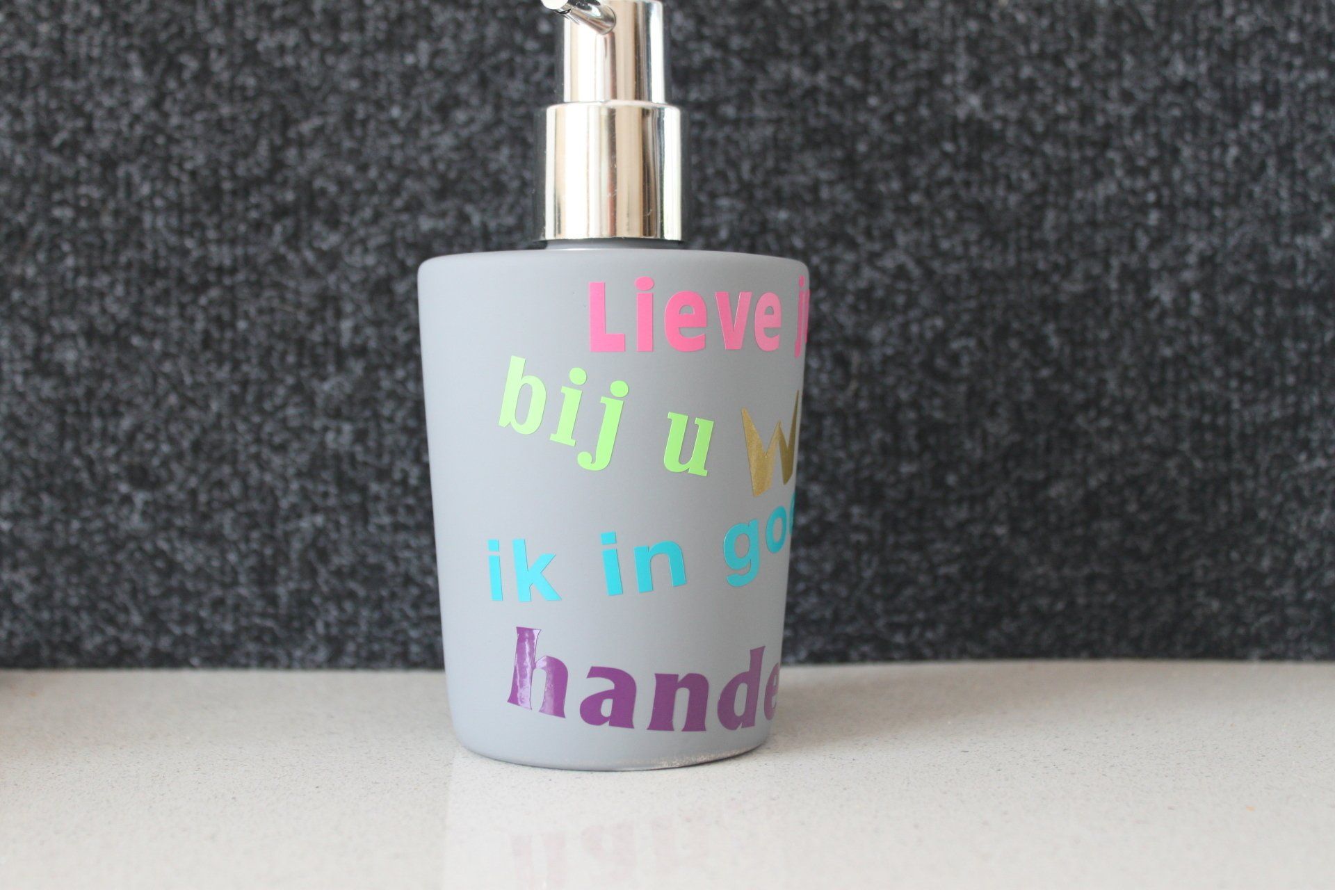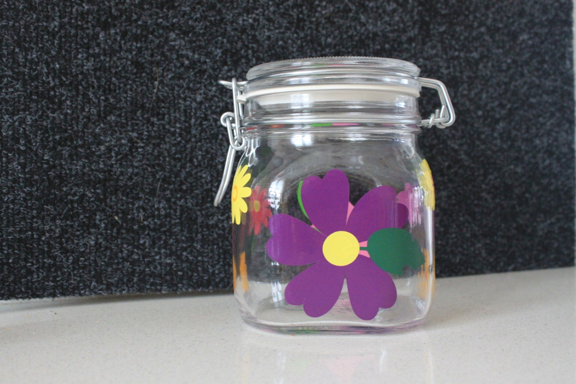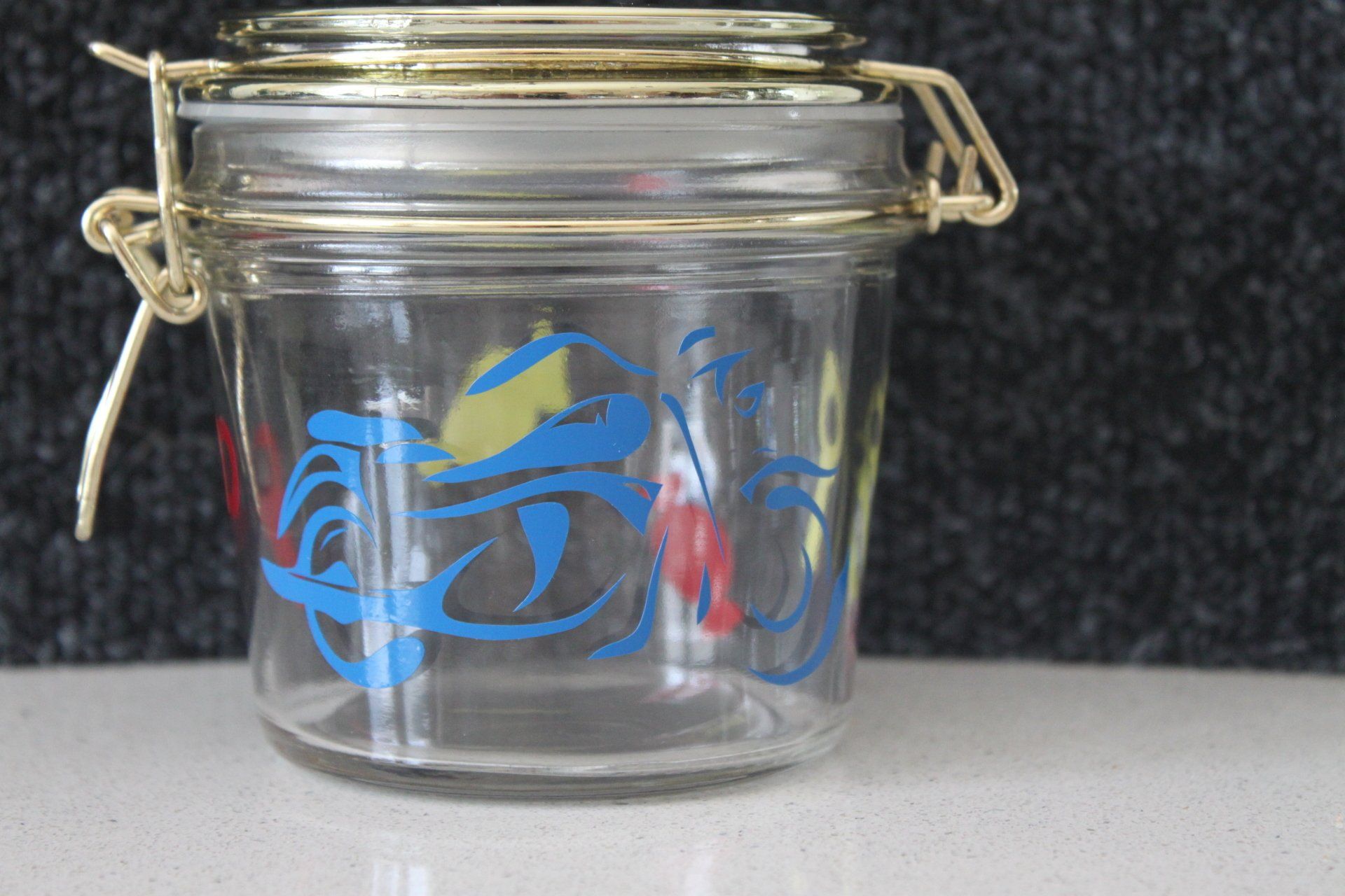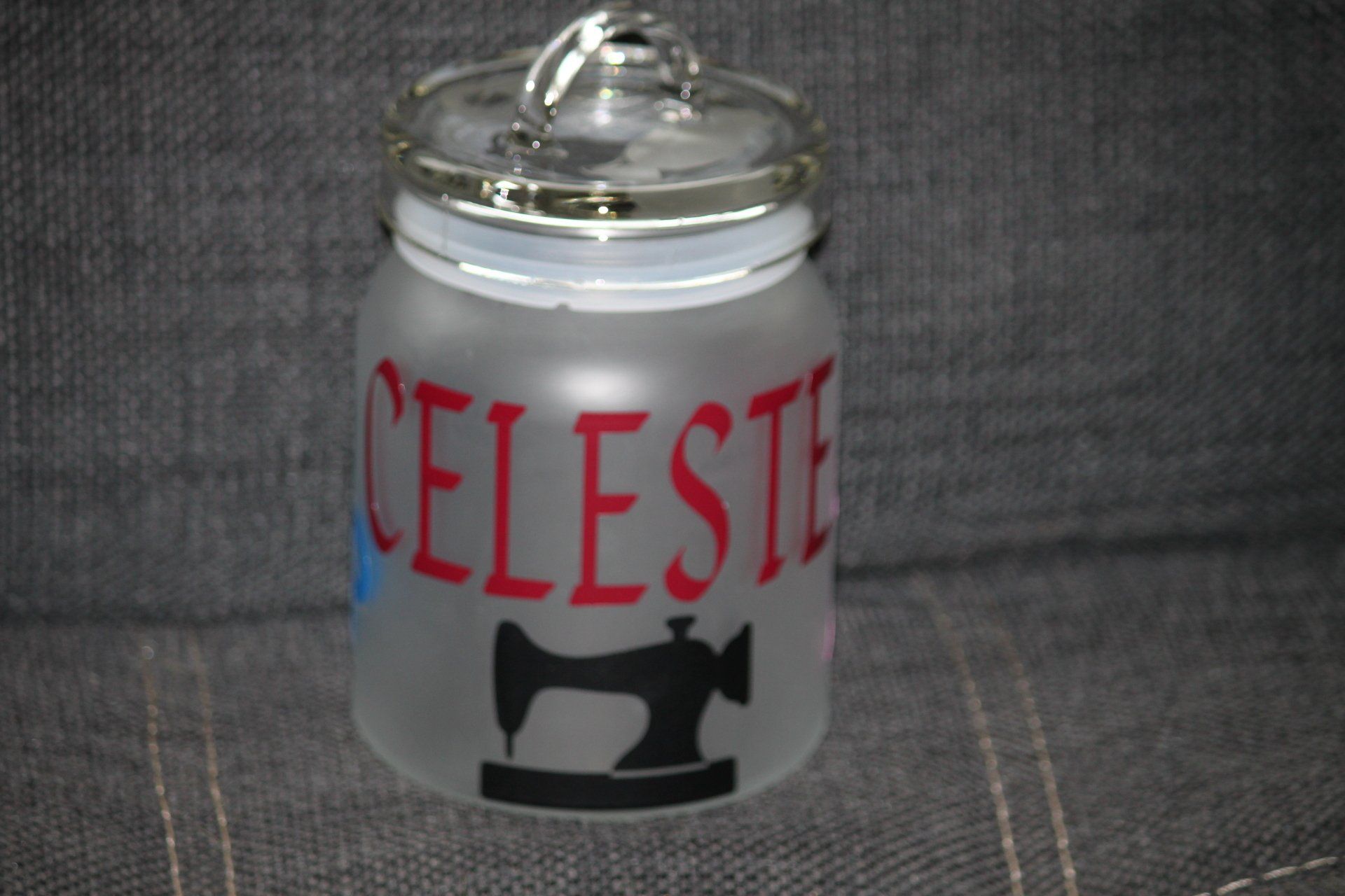 Bestel een snoeppot of wekpot met een leuke decoratie sticker en eventueel met naam of iets dergelijks erop.