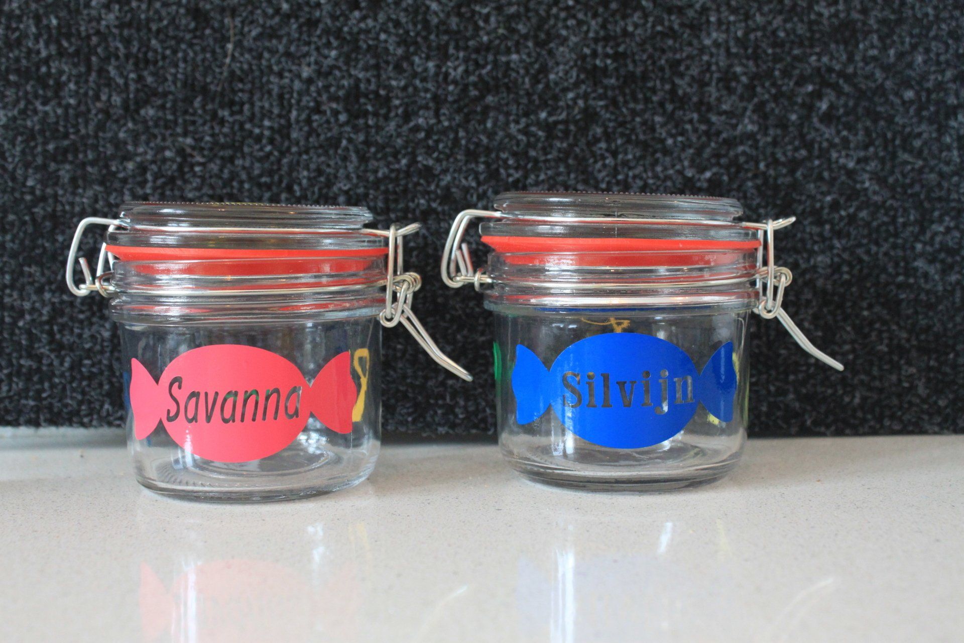 Naamstickers of decoratie op de snoeppotten van de kinderen?
